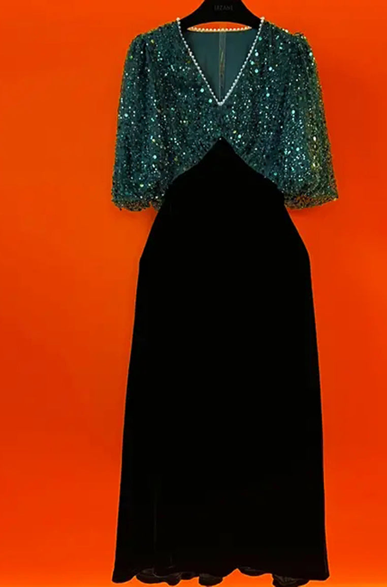 Ladies' fashionable sequined velvet long dress